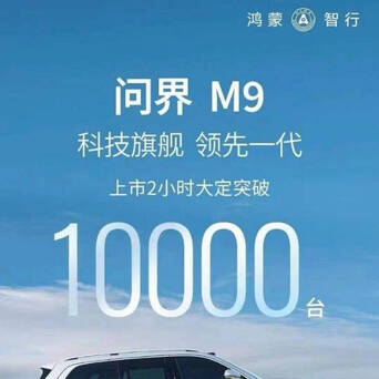【享界S9,24小时大定2500台!算扑街吗?】如果和问界M9比,那确实没法比。问界M9,2小时大定10000台(图2),但M9销量主力是增程版,和纯电的S9不是一个赛道。